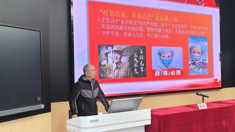 培训伊始,贺安栋老师以“伟大建党精神的科学内涵”为核心,为学生骨干系统构建了理解红色基因的理论认知框架。他循着百年党史发展脉络,生动回溯了一代代共产党人坚守初心、勇担使命的奋斗历程,用鲜活的人物形象与感人的奋进事迹,将抽象的精神内涵转化为可感可触的实践指引,深深触动了在场每一位学生骨干。