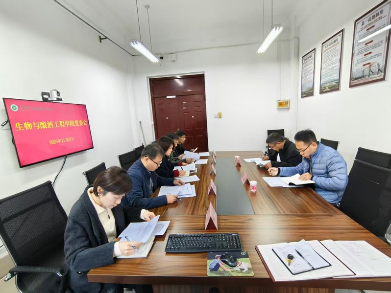 11月21日上午,生物与酿酒工程学院在学院党员活动室召开党委会、党政联席会,审议学生党员发展、教学改革与研究项目推荐、校级科研创新平台申报等事项。校党委委员、党委宣传部部长张伟列席指导。学院党委书记主持会议,全体党政班子成员参加会议。
